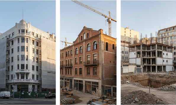 Reconversão foca na mudança de uso — transformar comercial em residencial, galpão em mixed-use. Aqui a complexidade está em adaptar funcionalidades: edifícios comerciais têm lógica de circulação, iluminação e ventilação completamente diferente de residenciais.